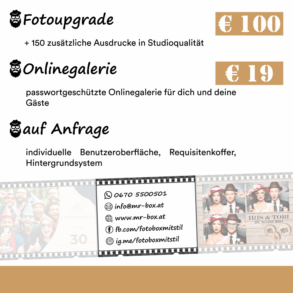 Ja – alle Fotos aus der Kamera und mit Layout stellen wir dir nach dem Event digital via MR-Box USB Stick zur verfügung.